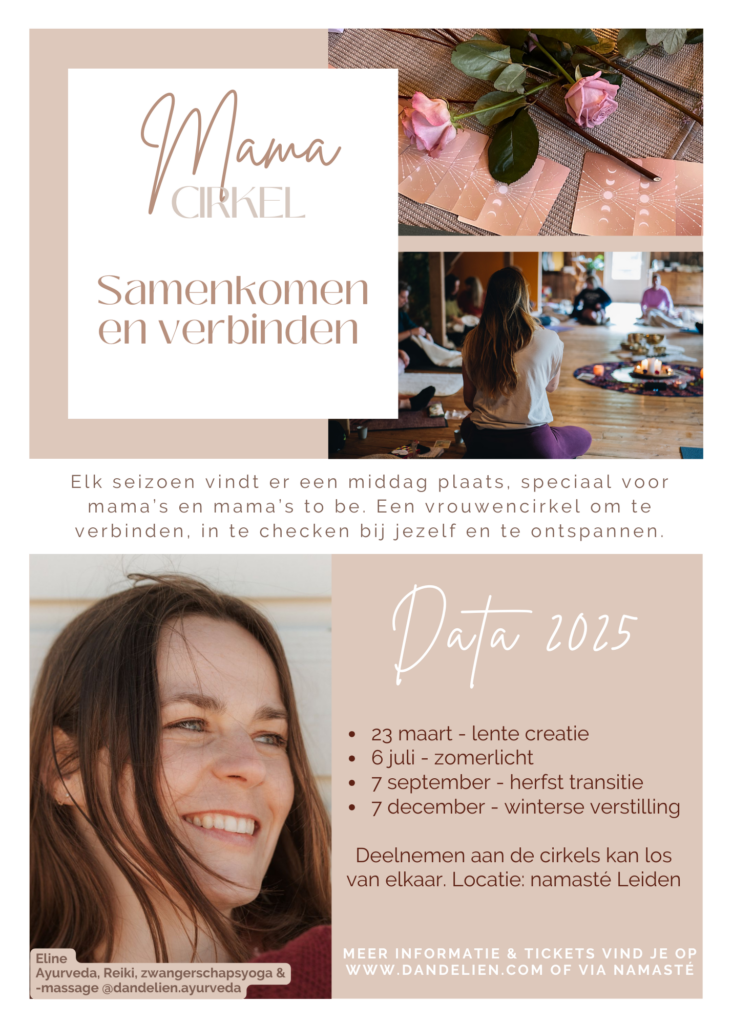 Een vrouwencirkel speciaal voor mama’s & mama’s to be. Om connectie te maken met jezelf en elkaar, ontspanning en Ayurveda. Elk seizoen organiseer ik een speciale middag.
